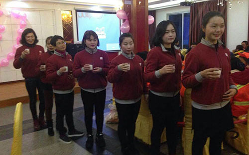 江西省宜春市在2015年遭遇了“世纪寒潮”的冬天。当人们选择躲在温暖的室内时,环卫工人们却仍然顶着凛冽的寒风坚守岗位。年关将至,宜春又将迎来一轮恶劣的雨雪天气,他们为了群众的出行方便,坚持奋斗在线。2月2日晚上,为了表示对环卫工人们的关爱与敬意,尚客优酒店铜鼓街心花园店三位老总胡尔凤、黄伟、曾雪平邀请全县一百三十多位环卫工人们相聚在一起,提前吃了个“年夜饭”。这是尚客优铜鼓街心花园店连续两年请环卫工人吃“年夜饭”了。